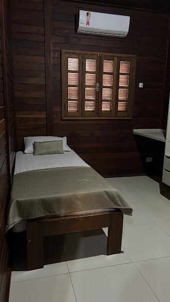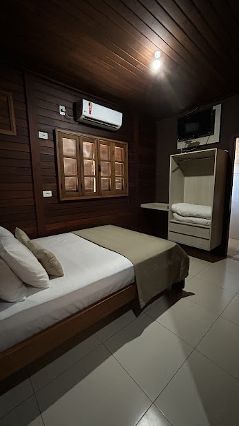 Esta acomodação é uma casa aconchegante com dois quartos, dois banheiros, sala e cozinha, ideal para quem busca conforto e privacidade. Localizada dentro da pousada, ela está em uma área separada e reservada, garantindo tranquilidade aos hóspedes. O espaço conta com uma piscina e é compartilhado com dois chalés, proporcionando uma experiência agradável e harmônica.
